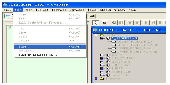 FIND 是在打开具体的双击AI-PROCESSING→双击三P三单点逐个查找后输入需要查找的位号,例如查找TI101217,最好位号具体些