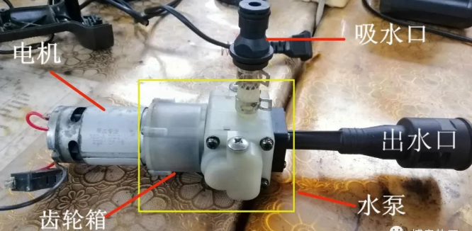 6月份,在使用过程中发现有一台冲洗机出现了故障,电机转但不出水,由于夏天冲洗空调使用频繁,少一台对现场工作效率会有一定影响。于是,我们抽时间对冲洗机进行解体检查。(下图为主要部件电机和泵)