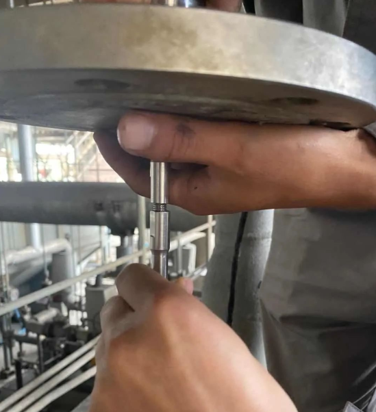 2.取下导波杆将液位计拔出(操作时注意导波杆会掉进被测液体中,需两人配合)
